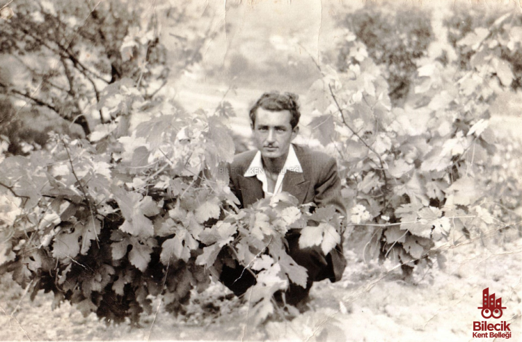 Bilecik Kent Belleği’nin arşivinden çıkan bu fotoğraf, yaklaşık 1949 yılına uzanan nostaljik bir yolculuğa davet ediyor. İstasyon bölgesinde, yerel halkın “Çörçıl’ın Bağı” olarak adlandırdığı üzüm bağlarında, Mehmet Şişli üzüm toplayıp bağların arasında yürürken görüntülenmiş.