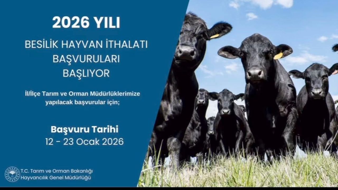Gölpazarı Tarım ve Orman Müdürlüğü’nden yapılan açıklamaya göre, 2026 yılı besilik hayvan ithalatı başvuruları, ESK aracılığıyla gerçekleştirilecek.