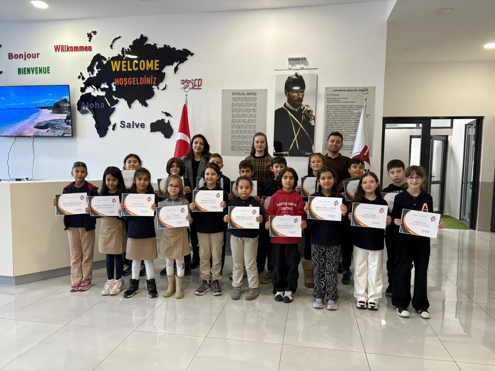 sınıf öğrencileri Arya İpek, Azra Demir ve Doru Keskinkılıç, 4. sınıf öğrencisi Kerem Akyurt gösterdikleri yüksek performansla Türkiye birinciliğini elde ederek okulu gururlandırdı.