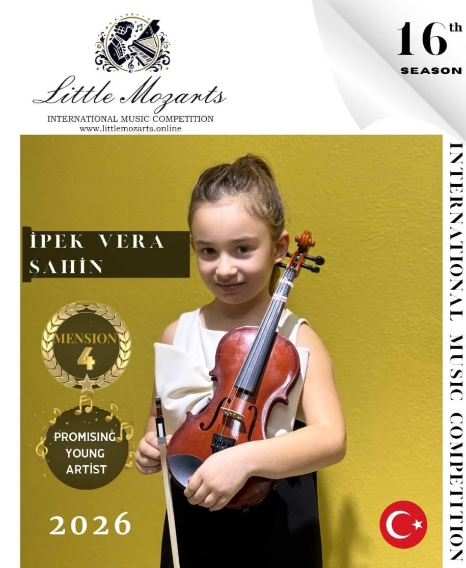 Bilecik Açı Koleji öğrencisi İpek Vera Şahin, 16. Uluslararası Little Mozart’s Müzik Yarışması’nda sergilediği başarılı performansla mansiyon (4’üncülük) ödülü kazandı.