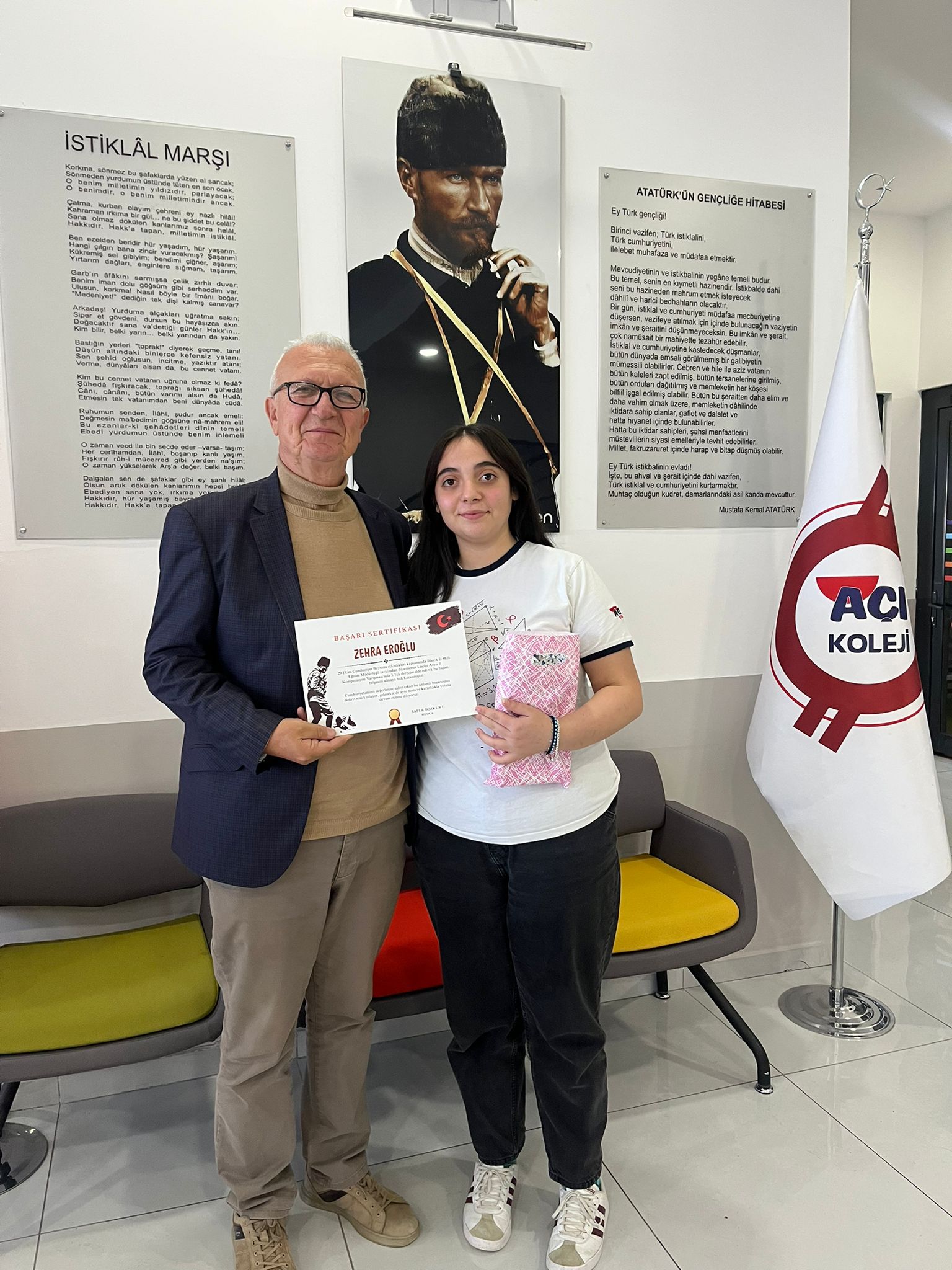 “Cumhuriyetimizin 102. yılında, gençlerimizin kaleminden dökülen anlam dolu cümlelerle bu özel günü taçlandırmak bizler için büyük bir mutluluk. Öğrencimiz Zehra Eroğlu’nu yürekten tebrik ediyor, bu başarının hem kendisi hem de Açı Koleji ailesi adına gurur verici olduğunu belirtmek istiyorum.”