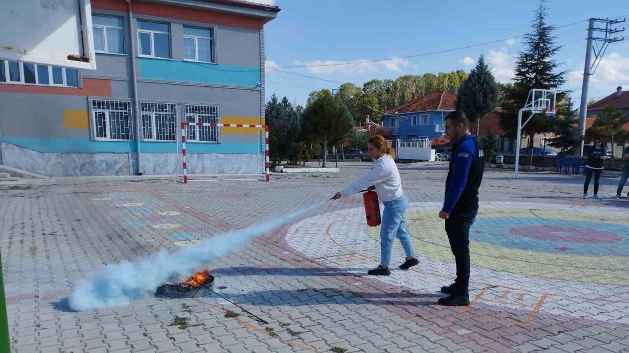 Afyonkarahisar İl Afet Acil Durum Müdürlüğü (AFAD) tarafından ilk ve ortaokul öğrencilerine yönelik deprem tahliye ve yangın tatbikatı gerçekleştirildi.