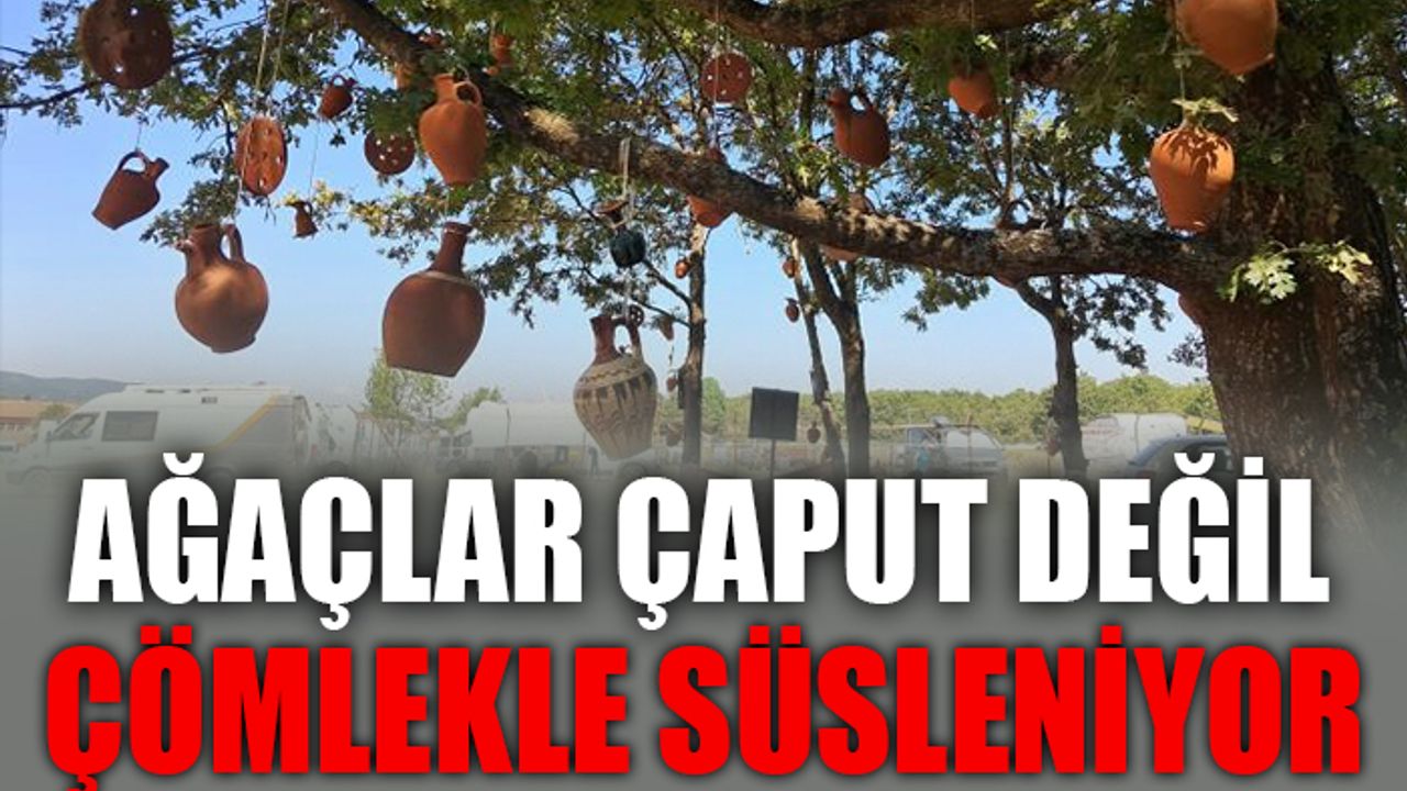 Türkiye'nin önemli çömlekçilik merkezlerinden biri olan köyde, bu kez alışılmışın dışında bir görüntü ortaya çıkarken, ağaçlar, çaput yerine çömlekle süslendi.