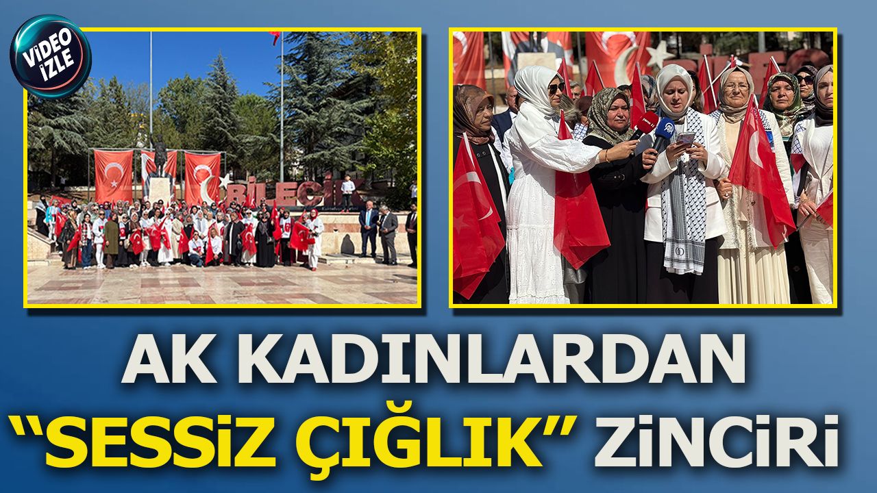 Bilecik’te Atatürk Parkı’nda toplanan AK Partili kadınlar, ellerinde dövizlerle ve sessiz çığlıklarıyla Cumhuriyet Meydanı’na yürüdü. Kadınlar el ele vererek zincir oluşturdu ve Gazze’de yaşanan vahşete karşı dayanışma mesajı verdi. Basın açıklamasını AK Parti Kadın Kolları Başkanı Semra Aydemir okudu.