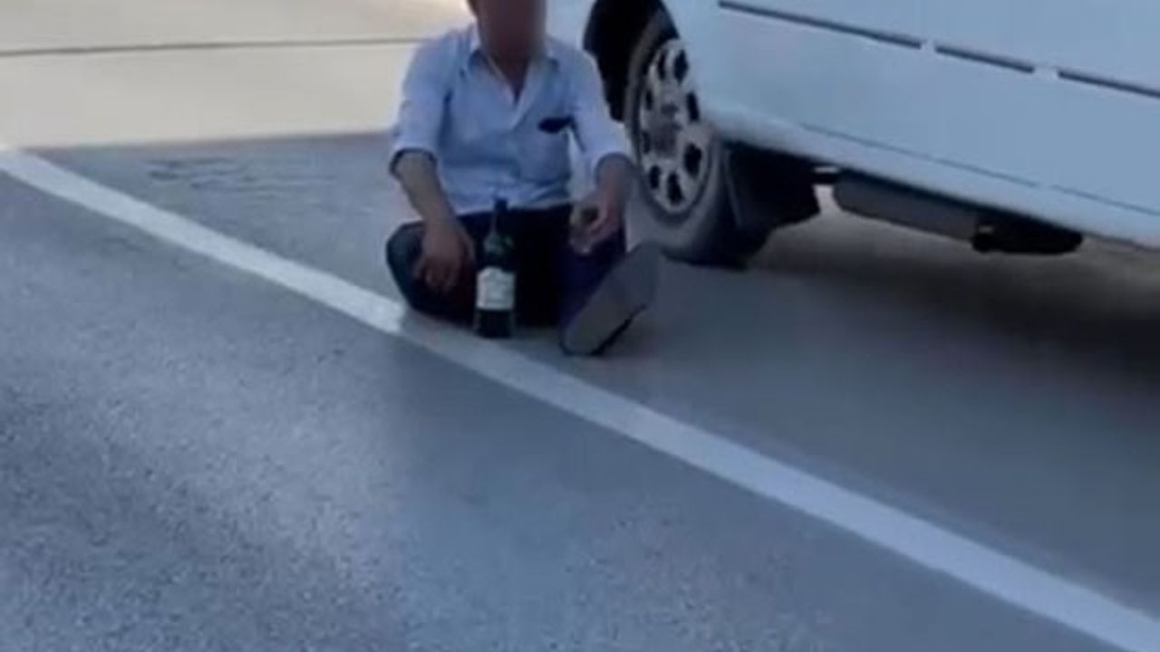 Afyonkarahisar'da içtiği alkolün etkisi ile sarhoş olan bir şahıs, trafiğin yoğun olduğu bir bölgede yolun ortasına oturarak adeta ölüme davetiye çıkardı.