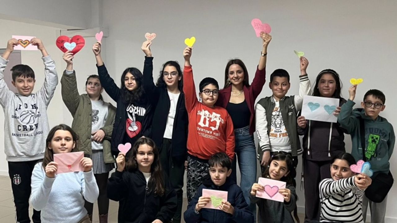 Açıklamada, ortaokul öğrencileriyle birlikte A1 seviyesindeki Almanca çalışmalarının sürdürüldüğü, Sevgililer Günü dolayısıyla aileler için kartlar hazırlandığı belirtildi. Atölyede yeni kelimeler öğrenildiği, basit cümleler kurma çalışmaları yapıldığı ve öğrencilerin hazırladıkları kartlara sevgi dolu mesajlar yazdığı ifade edildi.