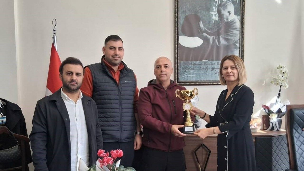 İl birincisi takım oyuncularını makamında kabul eden İlçe Milli Eğitim Müdürü Tuba Sinan, başarılarından dolayı kendilerini tebrik ederek Ege Bölgesi müsabakalarında başarı diledi.