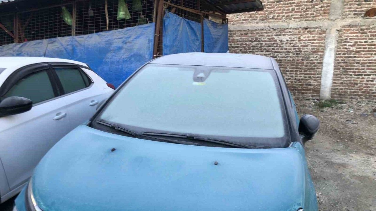 Eskişehir’de hava sıcaklıkların en düşük olduğu sabah saatlerinde arabaların camlarında buzlanma oluştu.
