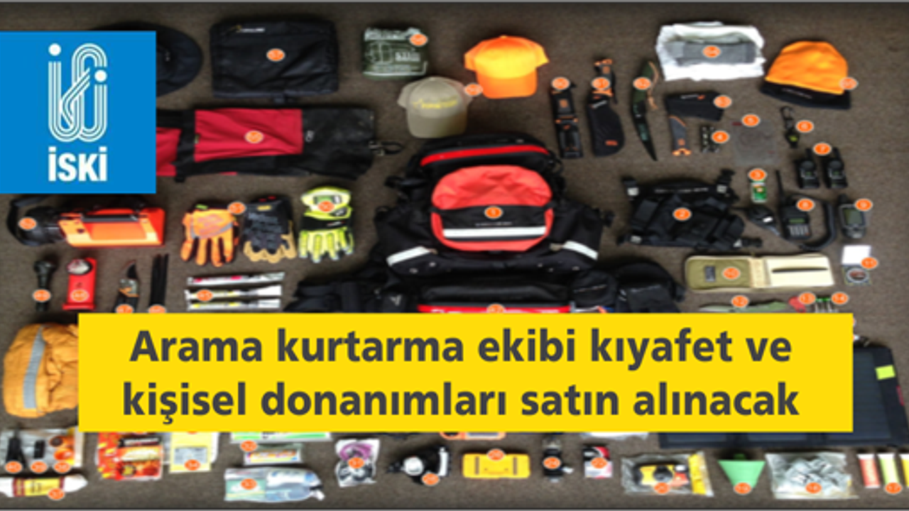 İstanbul Su Ve Kanalizasyon İdaresi (İski) Genel Müdürlüğü tarafından arama kurtarma ekibi kıyafet ve kişisel donanımları satın alınacak.