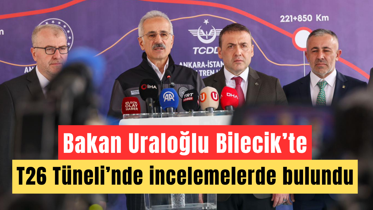 Ulaştırma ve Altyapı Bakanı Abdulkadir Uraloğlu, Ankara–İstanbul Yüksek Hızlı Tren (YHT) Hattı’nın önemli etaplarından biri olan T26 Demiryolu Tüneli Projesi kapsamında Bilecik’te incelemelerde bulundu.