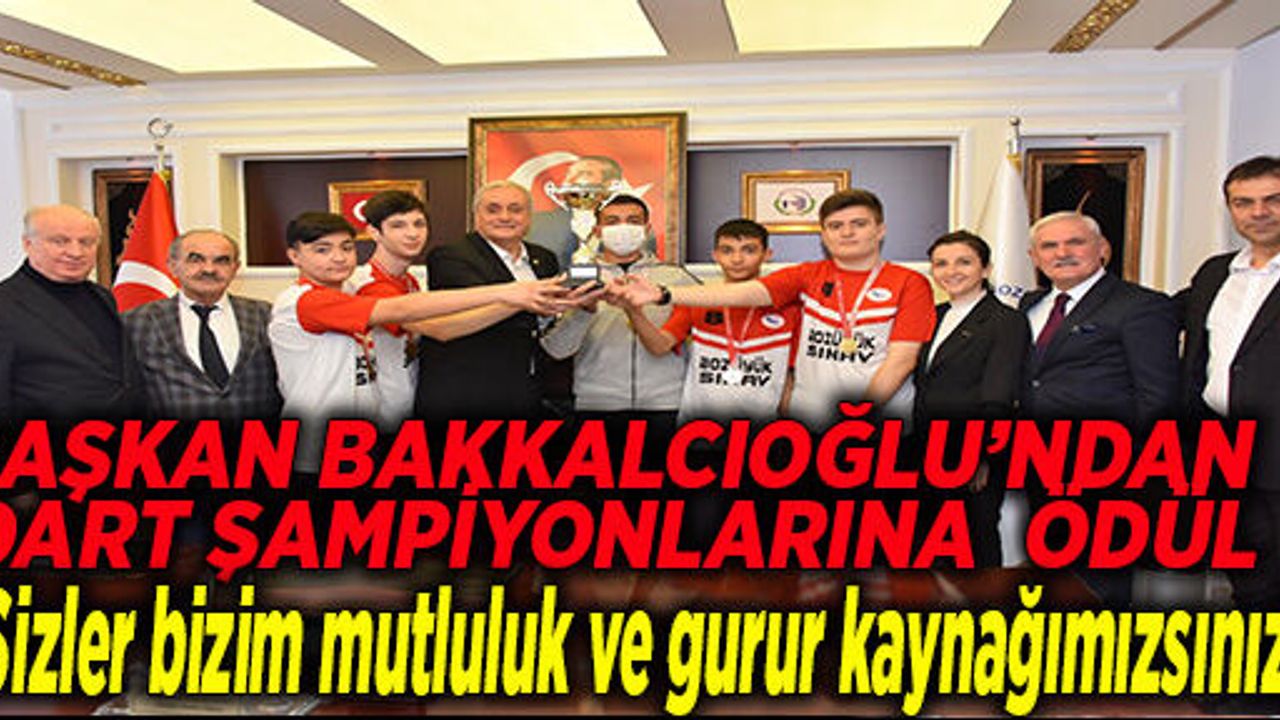 Başkan Bakkalcıoğlu’nu makamında ziyaret eden; Özcan Karagöz, Ahmet Kayra Çivici, Batuhan Kırlı ve Mustafa Kılıçkaya’dan oluşan şampiyon dart takımı, öğretmenleri ve Okul Müdürü Ömer Boğaz ile birlikte Başkan Bakkalcıoğlu ile bir süre görüşerek sohbet ettiler. Şampiyonluk sevincini Başkan Bakkalcıoğlu ile paylaşan başarılı sporcular, Başkan Bakkalcıoğlu’na şampiyona ve çalışmalar hakkında bilgi verdiler. Genç Erkekler Dart Türkiye Birincisi olan takımın sporcularını ve öğretmenlerini tek tek tebrik eden Başkan Bakkalcıoğlu, geleceğimizin teminatı gençlerin çeşitli spor dallarında elde etmiş oldukları başarılardan dolayı son derece mutlu olduklarını belirterek “Sizler bizim mutluluk ve gurur kaynağımızsınız. Çok daha büyük başarılar elde edeceğinize inanıyor, başarılarınızın devamını diliyorum. Her zaman yanınızdayız.” dedi.