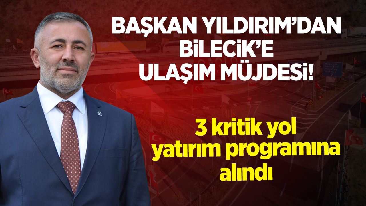 Bilecik’in yıllardır beklediği ulaşım yatırımlarında sevindirici gelişme yaşandı. AK Parti Bilecik İl Başkanı Serkan Yıldırım, sosyal medya hesabından yaptığı açıklamayla Bilecik’in ulaşım altyapısını güçlendirecek 3 önemli yol projesinin 2026 Yılı Yatırım Programı’na alındığını duyurdu.