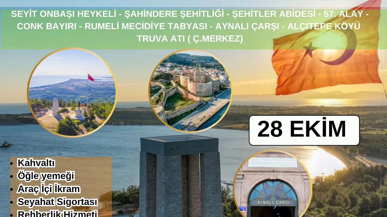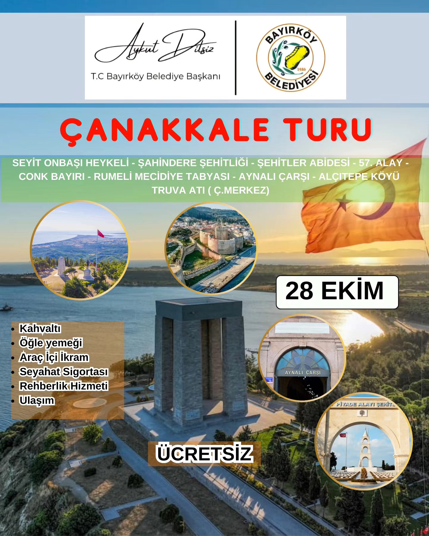 Bayırköy Belediyesi tarafından, vatandaşların tarih bilincini güçlendirmek ve Çanakkale ruhunu yerinde hissetmelerini sağlamak amacıyla 28 Ekim Salı günü Çanakkale Gezi Turu düzenleniyor.