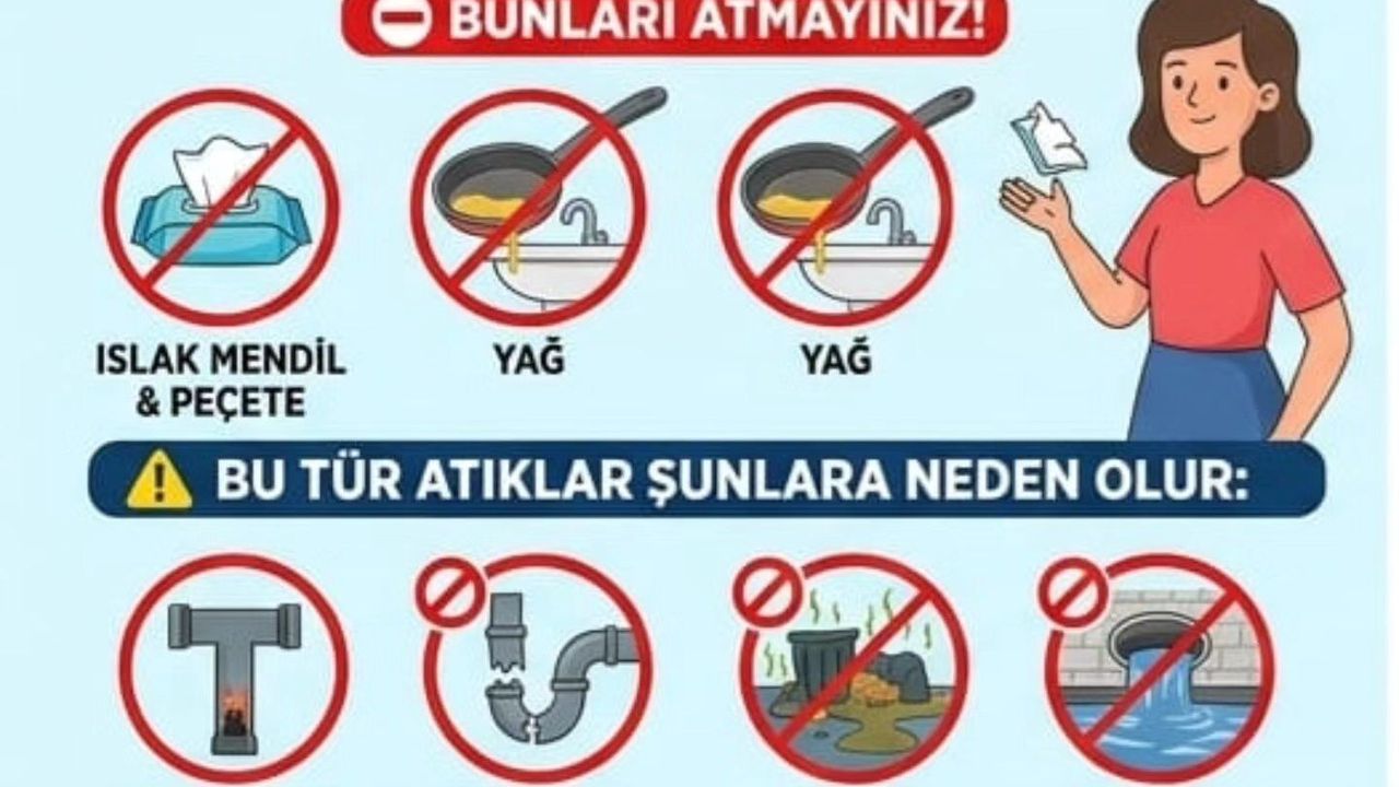 Açıklamada, ıslak mendil, peçete, yağ ve hijyenik atıklar başta olmak üzere benzeri maddelerin lavabo, tuvalet ve giderlere atılmaması gerektiği vurgulandı. Söz konusu atıkların altyapıda tıkanmalara yol açtığı, sistemlere zarar verdiği, çevre kirliliğine neden olduğu ve taşkın ile kötü koku gibi sorunlara sebep olduğu belirtildi. “Giderler çöp değildir” ifadesine yer verilen açıklamada, küçük ihmallerin büyük sorunlara yol açabileceğine dikkat çekilerek, daha temiz bir çevre ve sorunsuz bir altyapı için vatandaşların duyarlı olması istendi.