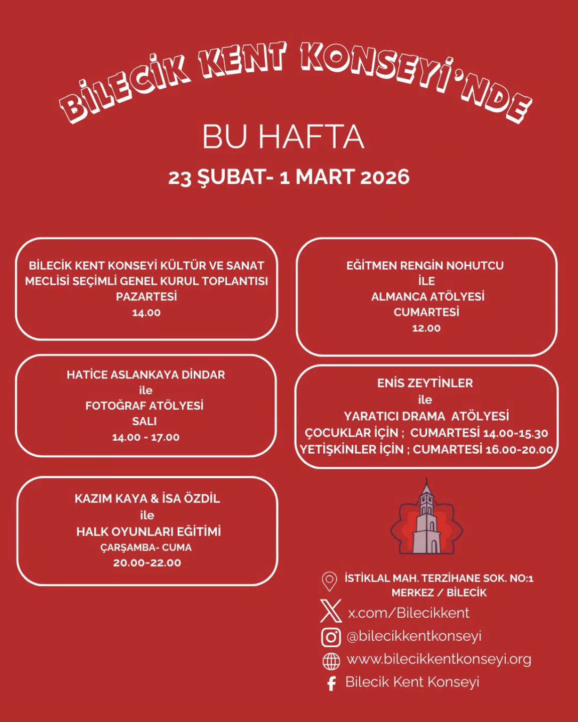 Bilecik Kent Konseyi, 23 Şubat – 1 Mart 2026 tarihleri arasında düzenlenecek kültür, sanat ve eğitim atölyelerini duyurdu.