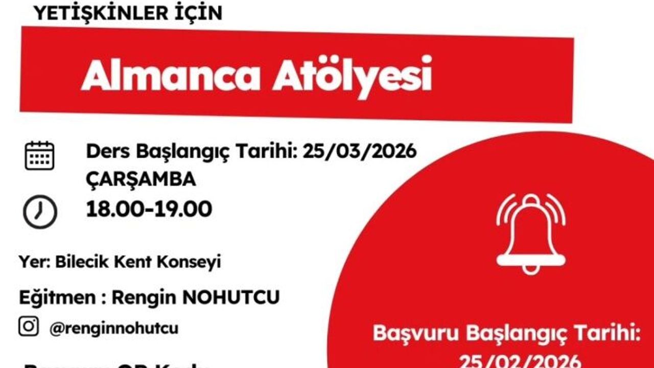 Bilecik Kent Konseyi, yetişkinler için 4 haftalık ücretsiz Almanca atölyesi düzenliyor.