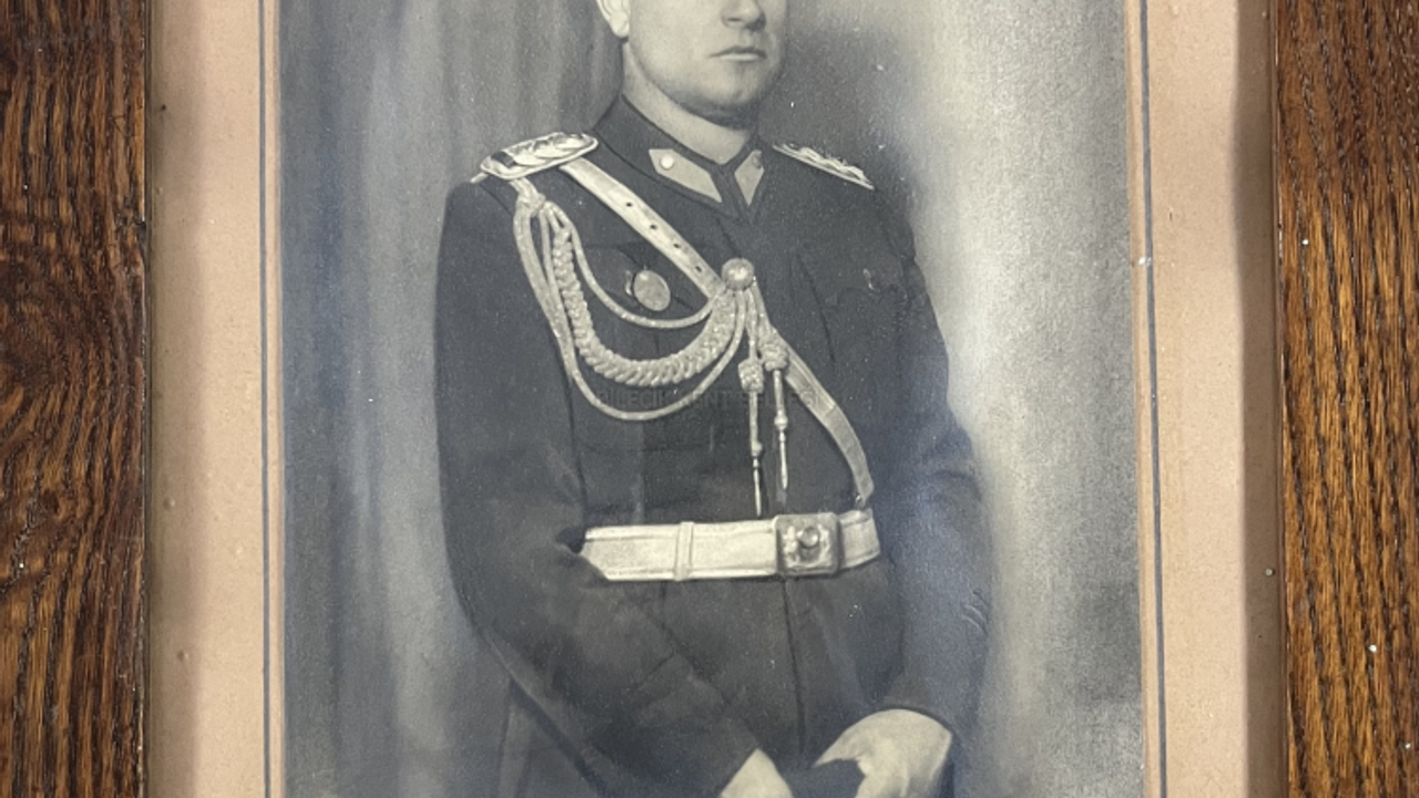 Tarihe iz bırakan bir kahraman: İstiklal Savaşı Gazisi, Süvari 4. Alay 3. Bölük Kumandanı Yüzbaşı İskender Kırmacı, askeri üniforması ve kırmızı şeritli İstiklal Madalyası ile gözler önüne seriliyor.