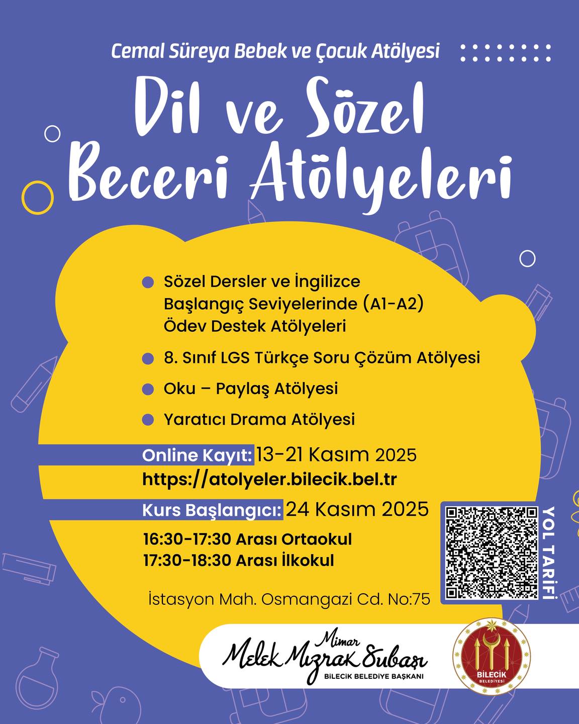 Cemal Süreya Bebek ve Çocuk Atölyesi çocukların akademik sosyal ve dil gelişimini destekleyecek yeni eğitim programlarını hayata geçiriyor. Dil sözel beceri yaratıcılık ve sınav hazırlığı alanlarında hazırlanan atölyeler için online kayıtlar 13- 21 Kasım 2025 tarihleri arasında alınacak.