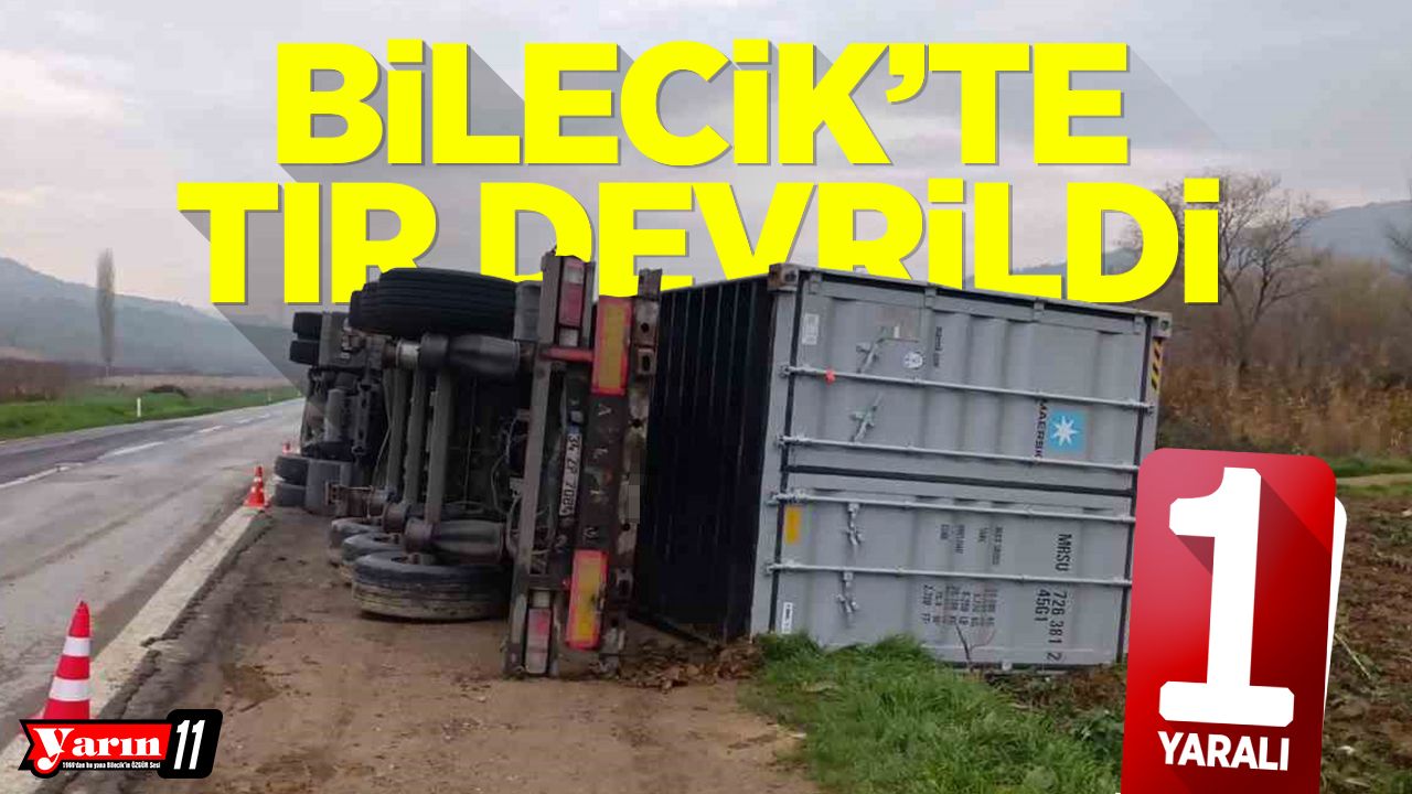 Bilecik’te seyir halinde kontrolden çıkan tır devrilirken, sürücüsü yaralandı.