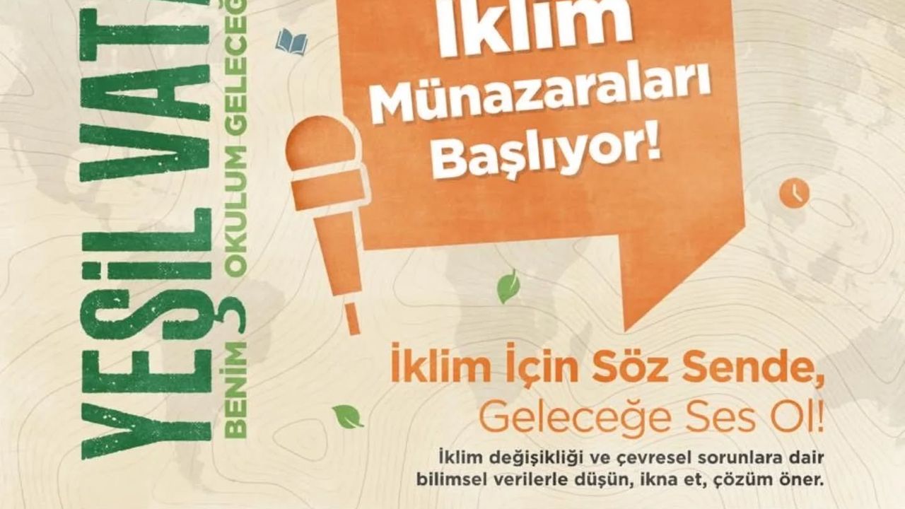 Bilecik İl Milli Eğitim Müdürlüğü, “Yeşil Vatan – Benim Okulum Geleceğe ÇARE” etkinlikleri kapsamında ortaokul ve lise öğrencilerini iklim değişikliği konusundaki farkındalığı artırmaya davet ediyor. Ocak ayı itibarıyla başlayacak İklim Münazara Programları ile öğrenciler, iklim değişikliğinin nedenlerini ve sonuçlarını tartışacak, bireysel ve toplumsal sorumlulukları ele alacak ve sürdürülebilir çözüm önerilerini ortaya koyacak.