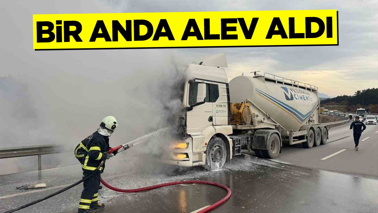 Bilecik’te seyir halindeki beton mikseri bir anda alev aldı.