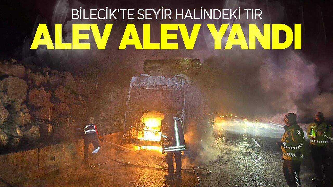 Bilecik’te seyir halindeki bir tırın motor kısmında çıkan yangın paniğe neden oldu.