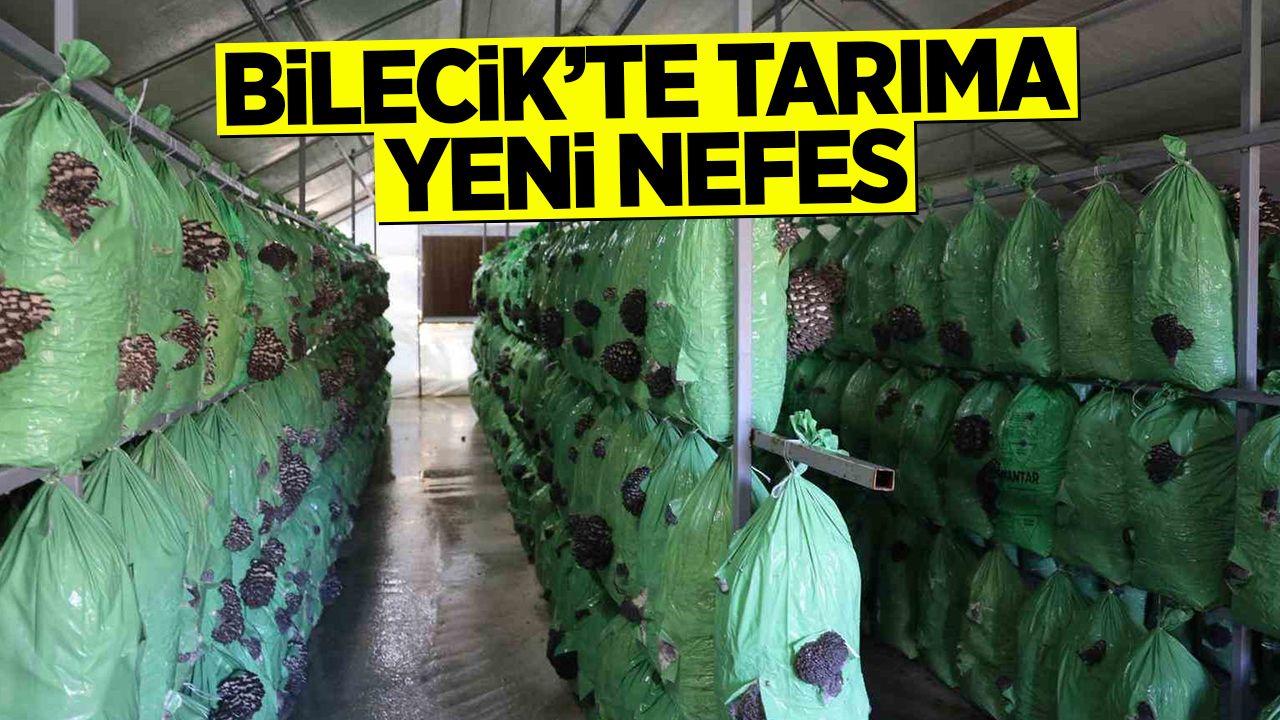 Bilecik’te yüzde 100 hibe desteğiyle kurulan istiridye mantar üretim serası, tarımsal üretime katkı sağlamaya başladı.
