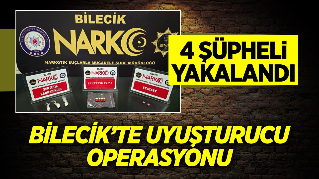 Bilecik Emniyet Müdürlüğü'ne bağlı Narkotik Suçlarla Mücadele Şube Müdürlüğü ekiplerince düzenlenen operasyonda çeşitli uyuşturucu maddeler ele geçirildi, 4 şüpheli gözaltına alındı.