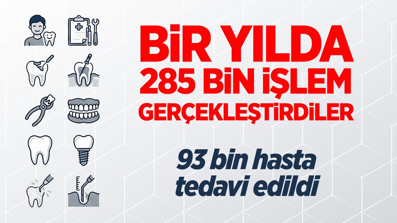 Gerçekleştirilen işlemler arasında 20.000 dolgu, 4.500 kanal tedavisi, 16.000 diş çekimi, 2.300 çene-damak protez, 11.000 porselen diş uygulaması, 1.400 implant, 20.000 yarım çene diş taşı temizliği, 2.300 yarım çene derin diş eti tedavisi ve 28.000 radyografi yer aldı.