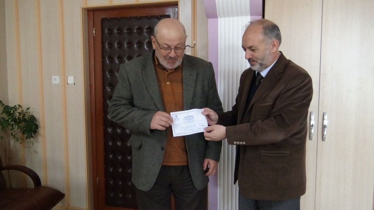 Umre paralarını teslim ettiklerini aktaran Eroğlu; “Fransa’da inşaat, orman işleri, maden işlerinde çalıştım. Yaklaşık 10 yıldır Türkiye’de kalıyorum. Hac görevini yaptık ve umre niyetimiz vardı. Biriktirdiğimiz parayı kardeşlerimizin acılarına bir nebze olsun yardımcı olabilmek ve yaralarını sarabilmek adına bu Ramazanın bereketinden feyzinden yararlanabilmek için bu miktarı bağışlama kararı aldık. Allah yaptığınız hayırlarınızı kabul etsin inşallah” dedi.