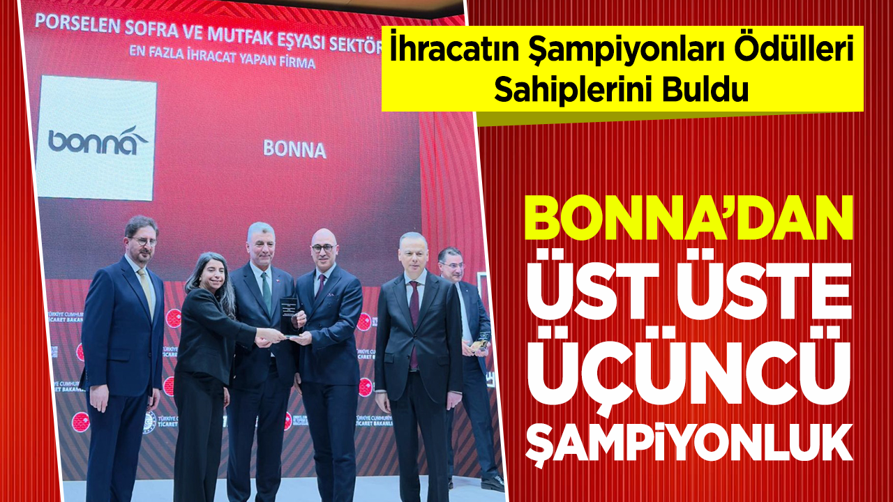Porselen sofra ve mutfak eşyaları alanında faaliyet gösteren Bonna, ihracattaki istikrarlı yükselişini sürdürerek bir kez daha sektör lideri oldu. Çimento, Cam, Seramik ve Toprak Ürünleri İhracatçıları Birliği tarafından düzenlenen törende, “En Fazla İhracat Gerçekleştiren Firma” ödülünü kazanan Bonna, aynı kategoride üst üste üçüncü kez şampiyonluğa ulaştı.