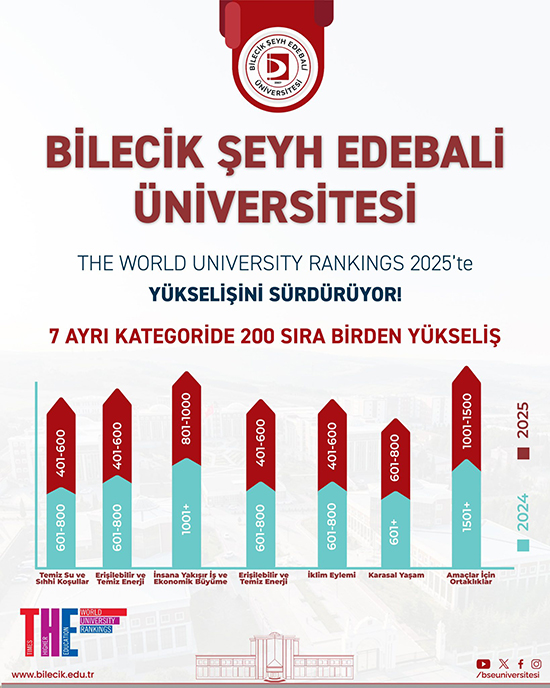 Bilecik Şeyh Edebali Üniversitesi (BŞEÜ) Times Higher Education etki sıralamasında yükselişini sürdürüyor.