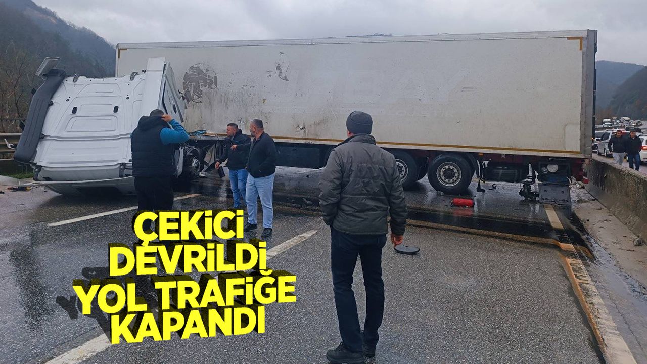 Alınan bilgiye göre, Geyve ilçesi Kızılkaya Mahallesi D-650 karayolunda seyreden çekici tır, sürücüsünün direkiyon hakimiyetini kaybetmei sonucu yan döndü. Kazada yaralanan olmazken, Bilecik-Sakarya istikameti geçici olarak trafiğe kapandı.