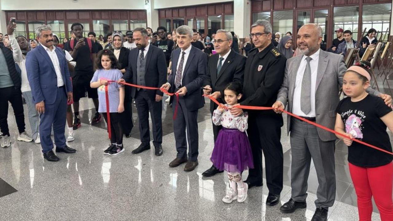 Rektör Uysal'ın konuşmasının ardından sergi açılış kurdelesi kesildi ve katılımcılar eserleri inceledi.