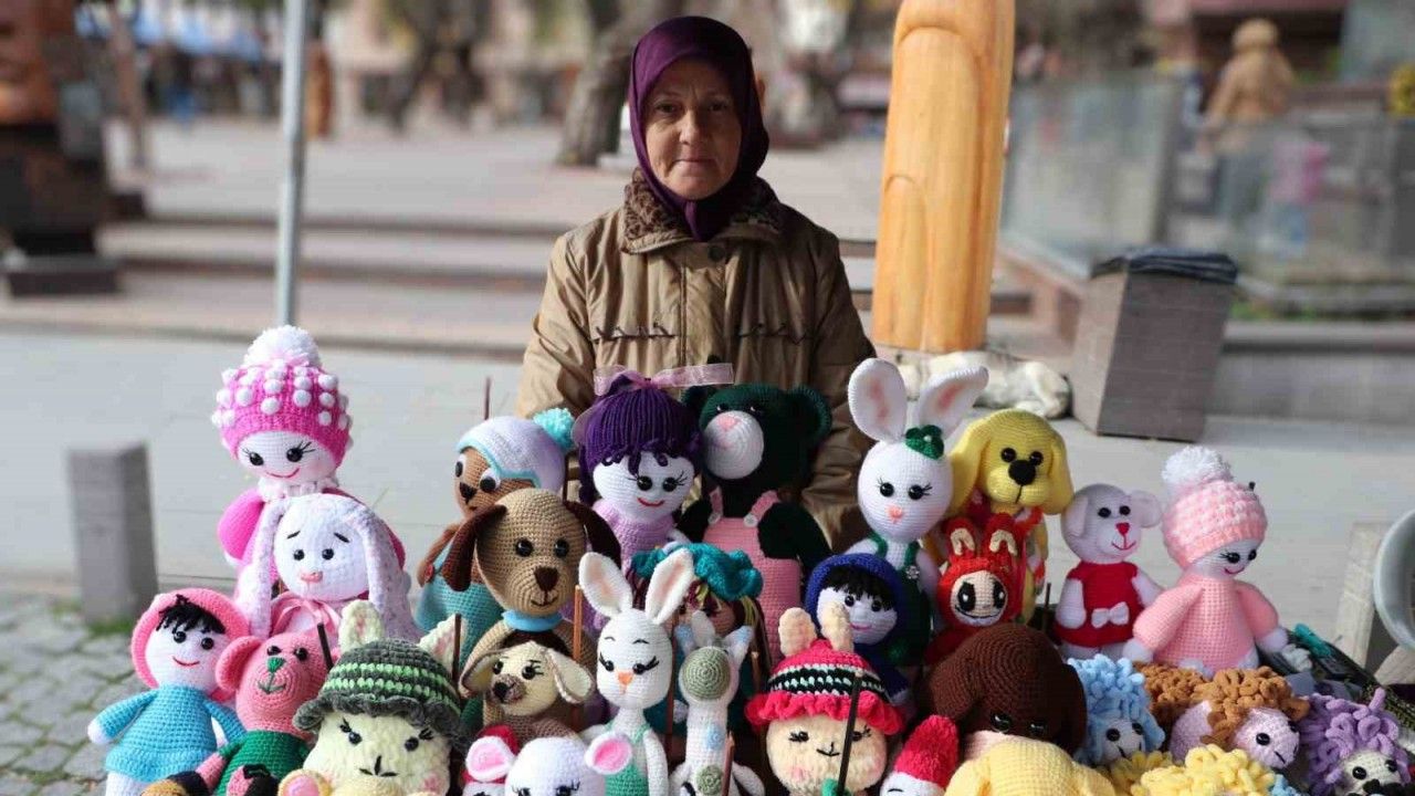 Eskişehir’de yaklaşık 5 yıldır örgü bebek yapan 58 yaşındaki kadın, Tarihi Odunpazarı Evleri bölgesinde satış yaparak aile ekonomisine katkı sağlıyor.
