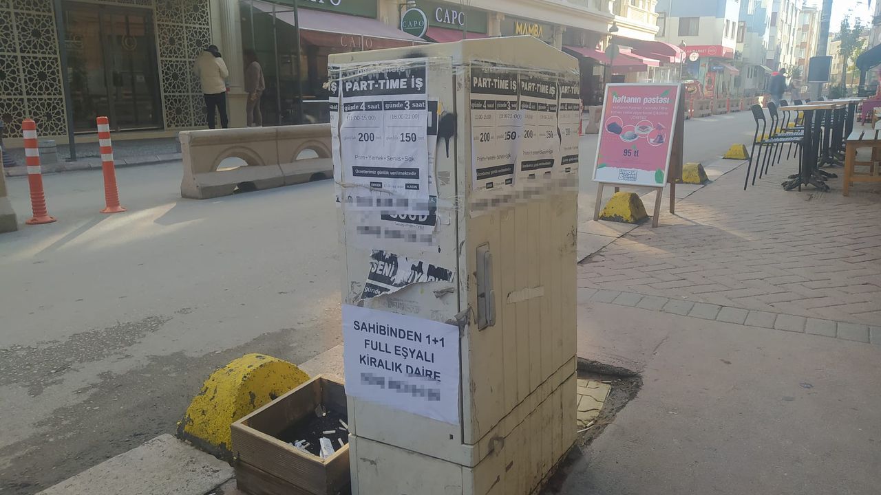 Eskişehir’de elektrik panolarının dört bir yanına yapıştırılan ilanlar çirkin bir görüntü oluşturuyor.