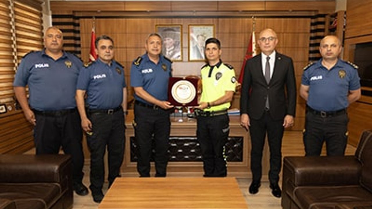 Bilecik İl Emniyet Müdürü Hakan Yılmaz, Emniyet Müdürlüğü kadrosunda görev yaparken Hatay Emniyet Müdürlüğü emrine atanan Komiser Fatih Sanay’a, görev süresi boyunca göstermiş olduğu özverili ve başarılı çalışmaları dolayısıyla teşekkür ederek plaket takdim etti.