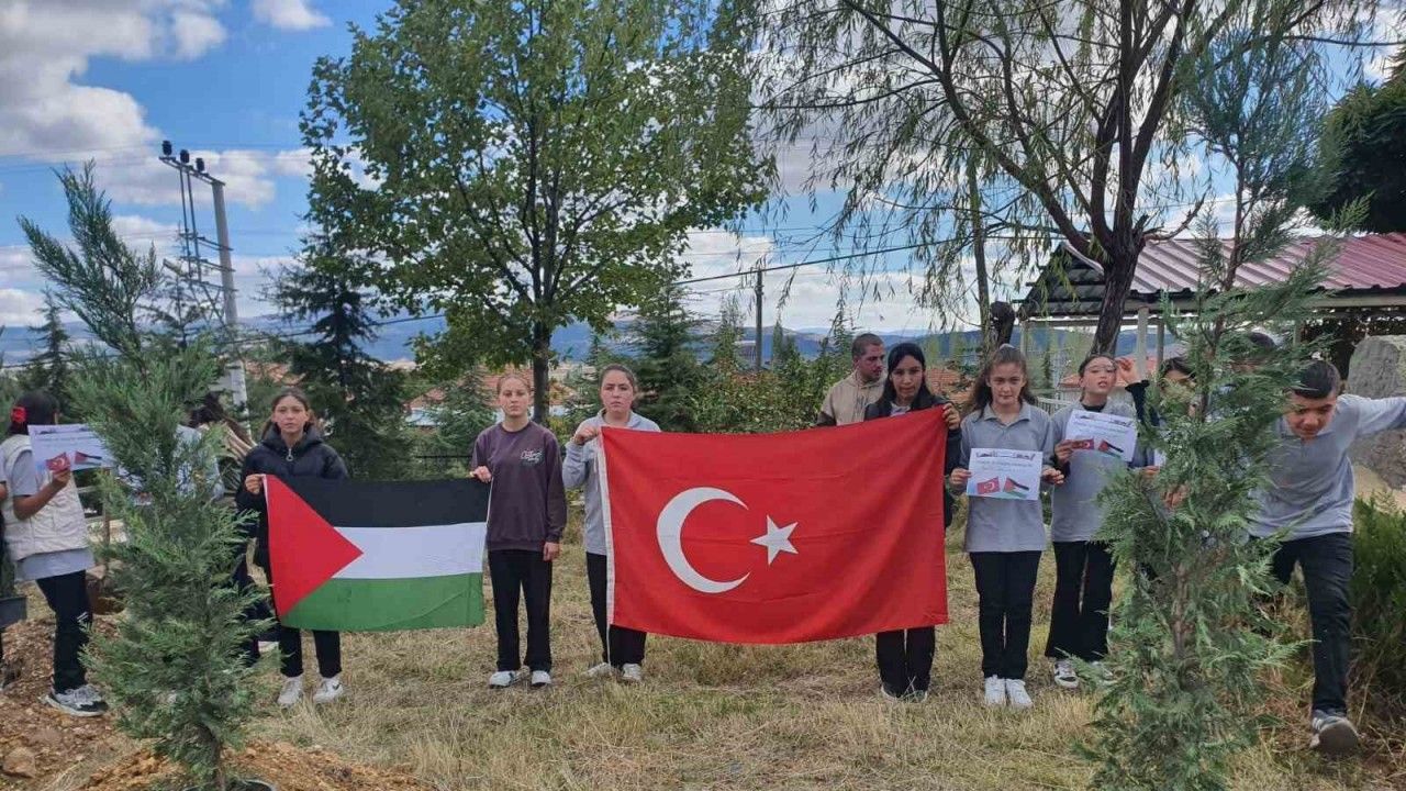 Afyonkarahisar’ın Sandıklı ilçesine bağlı Akharım Beldesi’nde Atatürk Ortaokulunda Gazze için barış bahçesi kuruldu.