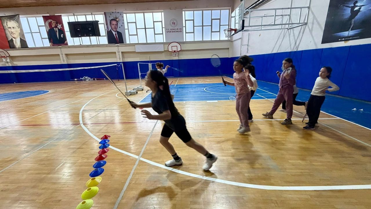 Bilecik’te genç sporcular, gsbsporokulları kapsamında düzenlenen badminton antrenmanlarında hız, çeviklik ve koordinasyon üzerine yoğunlaşıyor.