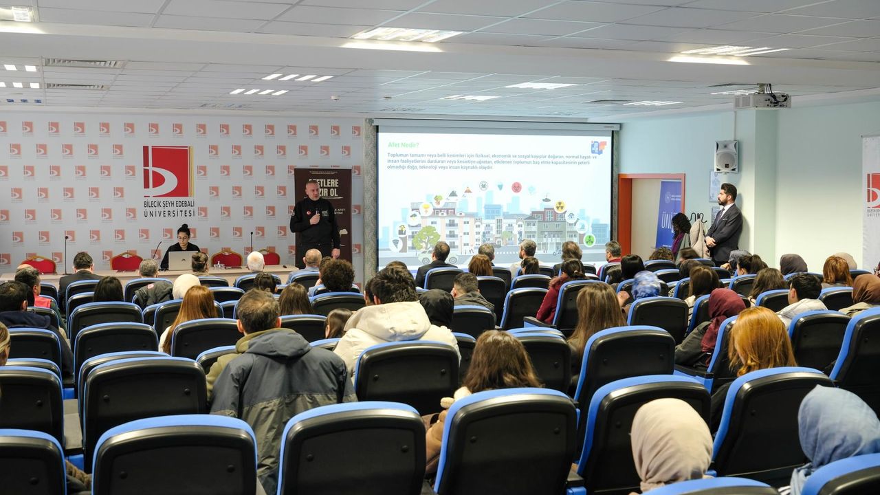 Şeyh Edebali Üniversitesi, gençlerin afetlere karşı bilinçlendirilmesi ve afet yönetimi konusunda farkındalıklarının artırılması amacıyla “Afetlere Hazır Ol” programını hayata geçirdi. ÜNİDES projesi kapsamında düzenlenen programda, afet öncesi hazırlık, afet anında doğru davranış biçimleri ve afet sonrasında yapılması gerekenler hakkında kapsamlı bilgilendirmeler yapıldı.
