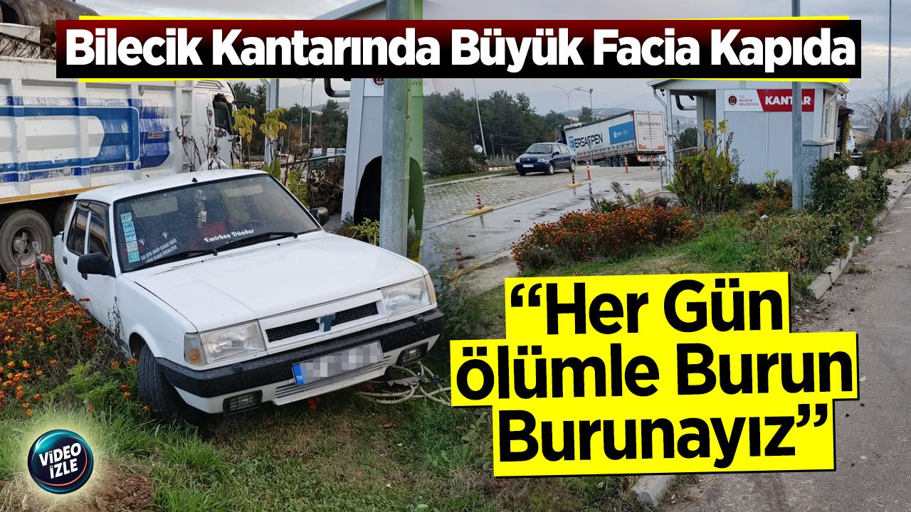 Bilecik’in kent girişinde bulunan kantarda görev yapan çalışanlar, neredeyse her gün ölüm tehlikesiyle karşı karşıya kalıyor. Sakarya yönünden gelen ya da Organize Sanayi Bölgesi’nden çıkarak kent merkezine ilerleyen araçların, kantarın arka tarafından keskin virajı fark edemeden hızlı şekilde girmesi, ciddi kazalara davetiye çıkarıyor.