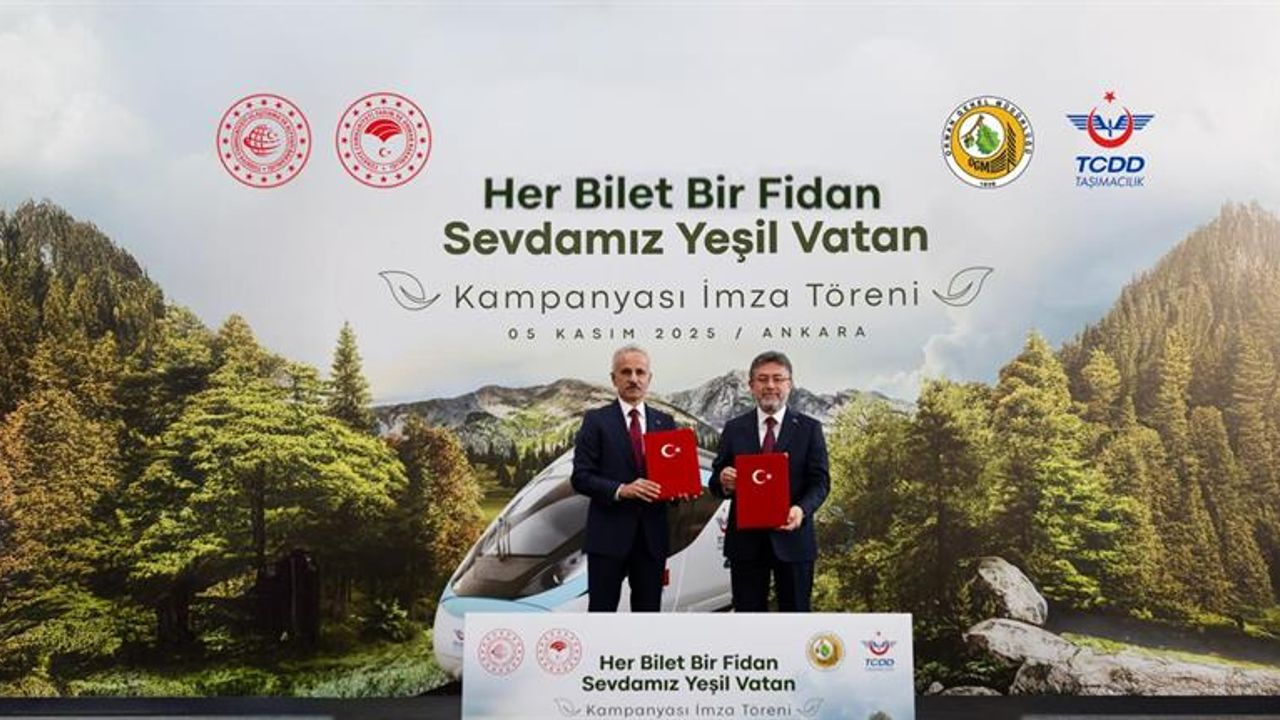 Tarım ve Orman ile Ulaştırma ve Altyapı Bakanlıkları, “Her Bilet Bir Fidan – Sevdamız Yeşil Vatan” projesi kapsamında işbirliği protokolü imzaladı. Ankara Yüksek Hızlı Tren Garı’nda gerçekleşen törende Bakan Vahit Yumaklı ve Bakan Abdulkadir Uraloğlu hazır bulundu.