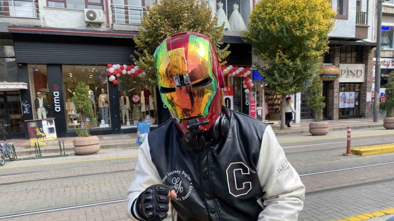 Eskişehir’de dünyaca ünlü çizgi roman karakteri İron-Man’in (Demir Adam) kaskı ile dolaşan motosiklet sürücüsü Bahadır Dülger, ilginç görüntüler oluşturuyor.