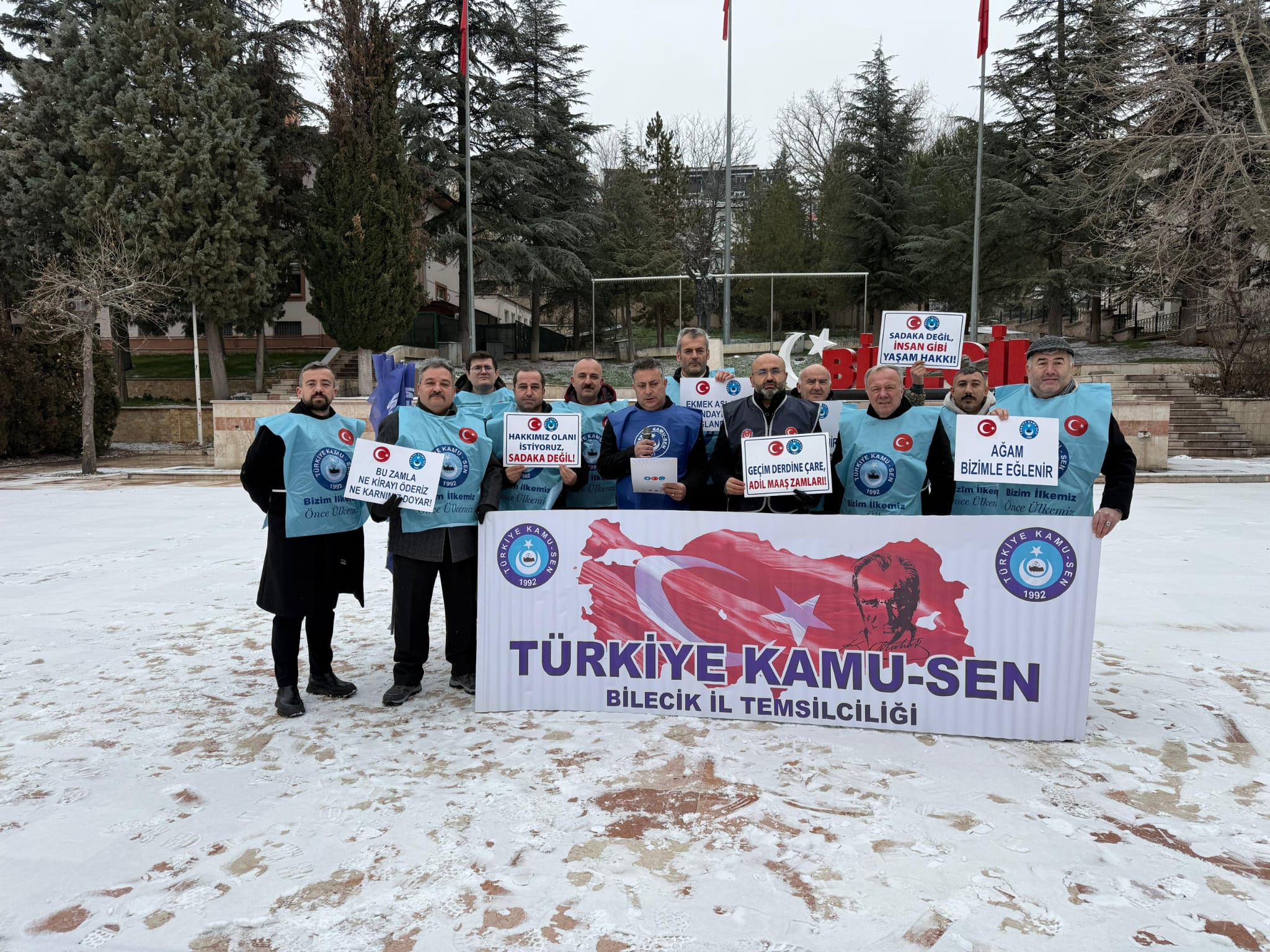 Türkiye Kamu-Sen Bilecik İl Temsilciliği tarafından, kamu çalışanları ve emeklilerin yaşadığı ekonomik sıkıntılara dikkat çekmek amacıyla “Ücrette hakkaniyet, vergide adalet” sloganıyla basın açıklaması gerçekleştirildi.