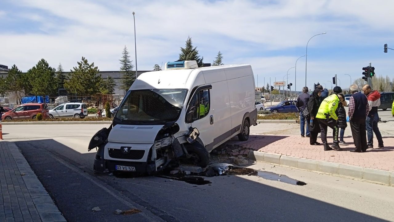 Afyonkarahisar’da sürücüsünün kontrolünden çıkan kamyonet, önünde seyreden hafif ticari araca ve yön tabelalarına çarptı. Araç cami avlusundan içeri gireceği esnada kaldırma çarparak dururken, kazada 2 kişi yaralandı.