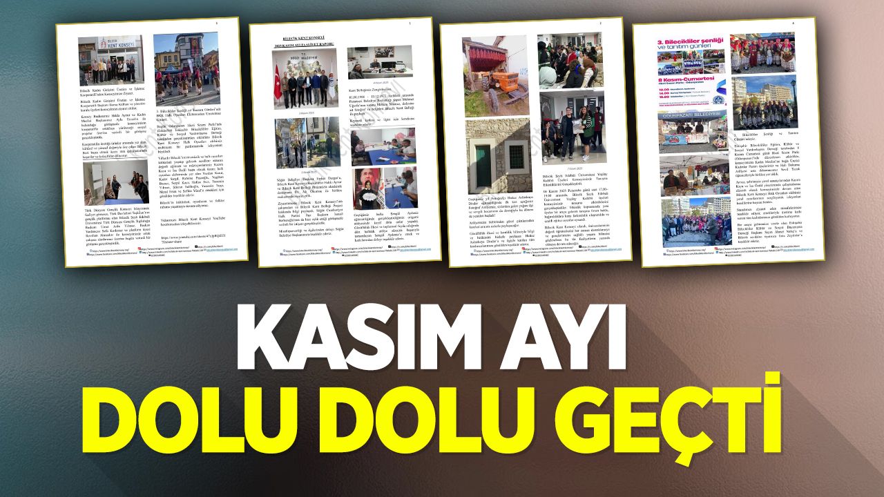 Kasım ayı Bilecik Kent Konseyi için yoğun ve verimli geçti. Kentin sosyal, kültürel ve toplumsal yaşamına katkı sunan birçok etkinlik ve araştırma, meclisler iş birliğiyle hayata geçirildi.