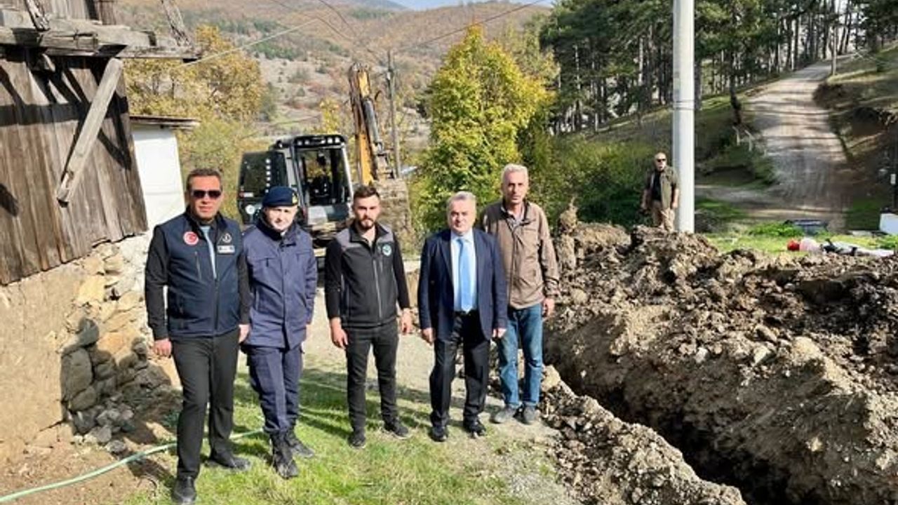 Bozüyük Kaymakamı Adem Öztürk, köydeki su hattını yerinde inceledi.