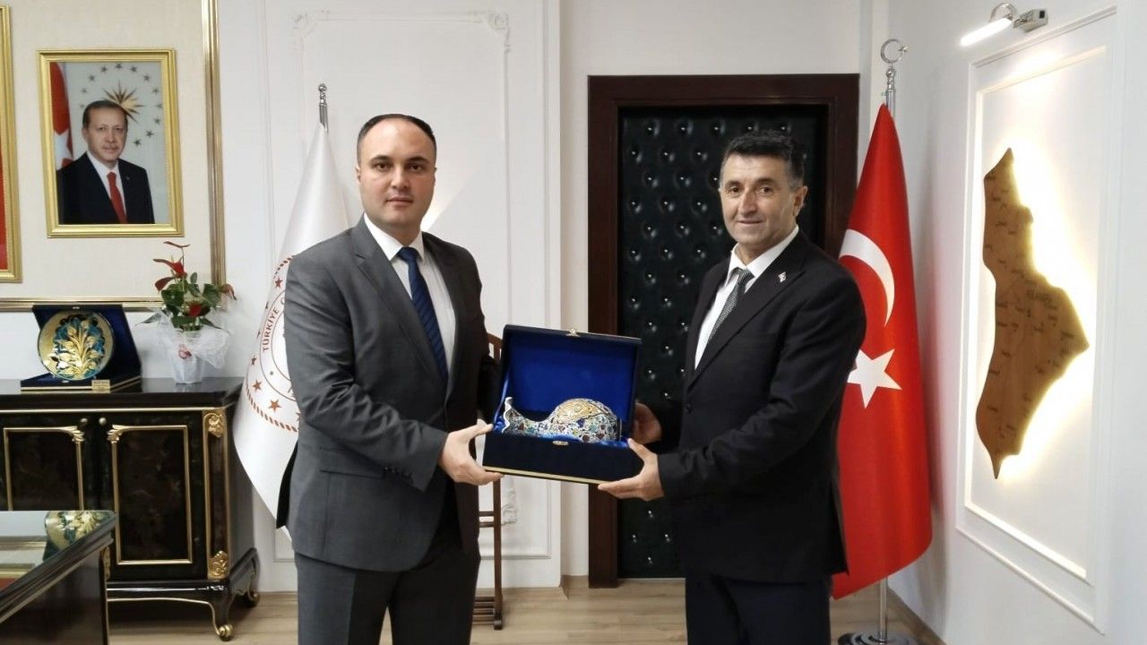 Ziyaretin sonunda Muhtar Şaban Yeşil, günün anısına Kaymakam Tosun’a çini vazo hediye etti.