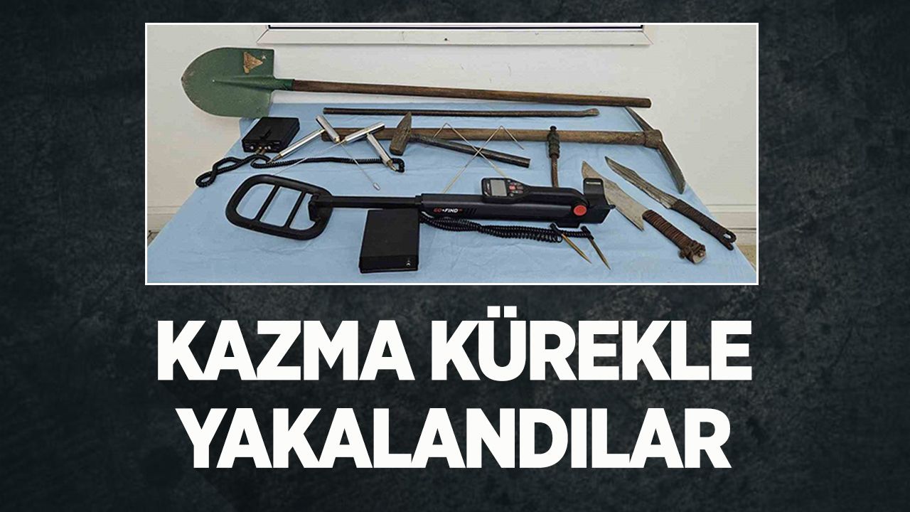 Yapılan incelemelerde 1 adet el dedektörü, 2 adet alan tarama cihazı, 1 adet pirinç alan tarama cihazı, 1 adet çekiç, 1 adet manivela, 2 adet pala, 1 adet kazma, 1 adet kürek ve 1 adet murç ele geçirildi.