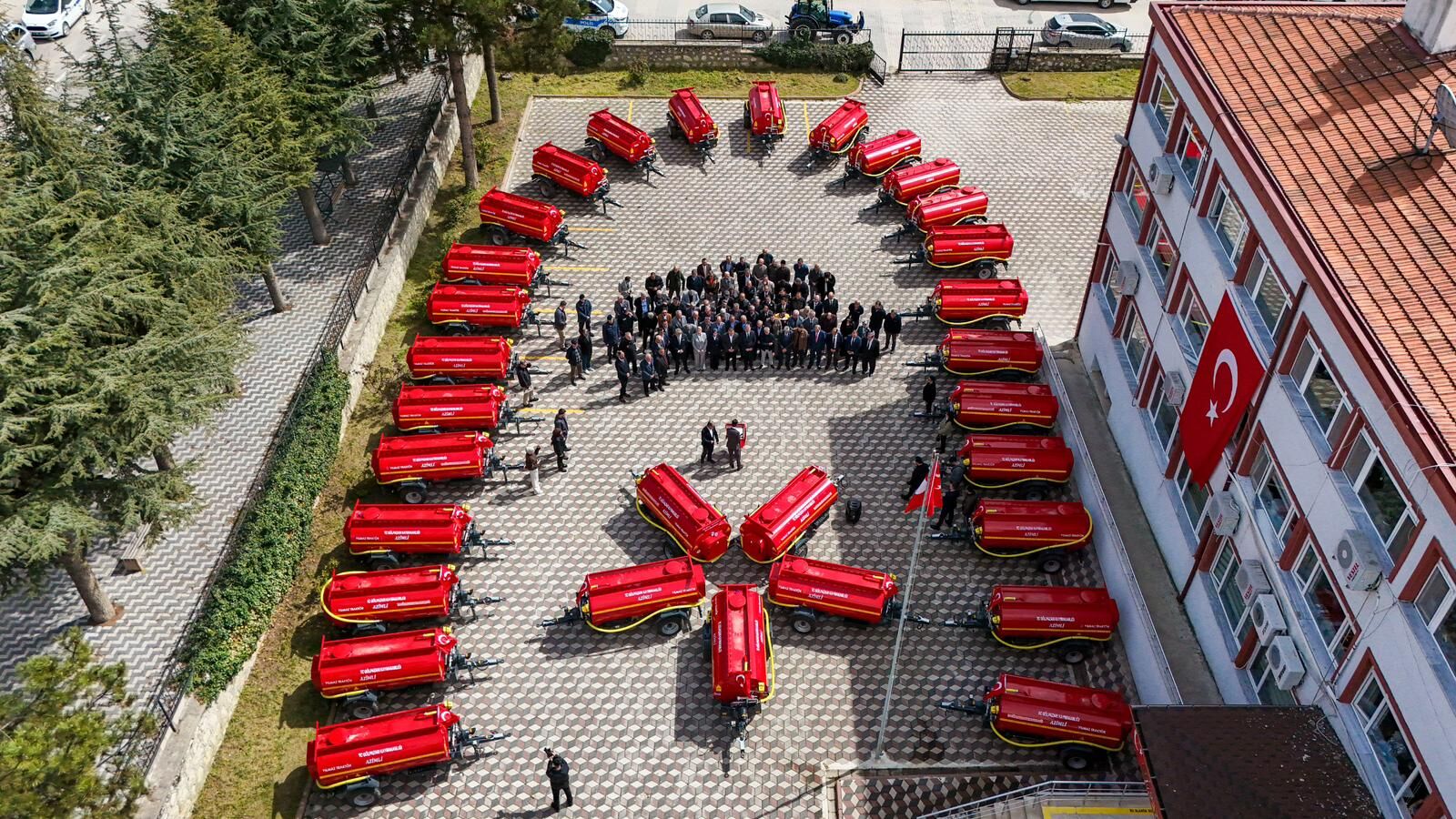 Vali Faik Oktay Sözer’in katılımıyla Gölpazarı ilçesinde gerçekleştirilen dağıtım programında, özellikle kırsal alanlarda meydana gelebilecek yangınlara hızlı ve etkin müdahale edilmesi hedeflendi. Program kapsamında köylere teslim edilen tankerlerle, yangınlara ilk müdahale imkânının güçlendirilmesi ve olası can ile mal kayıplarının en aza indirilmesi amaçlanıyor.